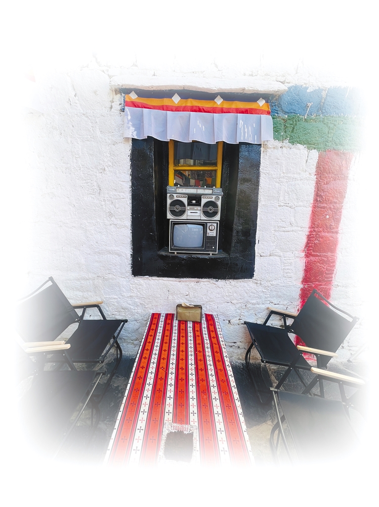 貢桑孜大院內(nèi)擁有百年歷史的藏式樓房,既保留了舊時(shí)的風(fēng)韻,也展現(xiàn)著年輕的活力。旦增特覺(jué)打小在大院長(zhǎng)大,如今他與旦增格桑、扎西多吉在大院一樓西北角經(jīng)營(yíng)“森廈”咖啡店,店內(nèi)咖啡飄香,顧客往來(lái),讓這座古老的大院充滿(mǎn)活力。為了讓咖啡店契合古院這份古韻古色的魅力,旦增特覺(jué)特意從家中拿來(lái)了舊茶杯、桌子、老電視機(jī)等諸多老物件。大院中間,桌椅板凳安置妥當(dāng),供居民休憩閑聊,陽(yáng)光灑下,糌粑香、甜茶香混著家常話(huà),滿(mǎn)是歲月靜好。