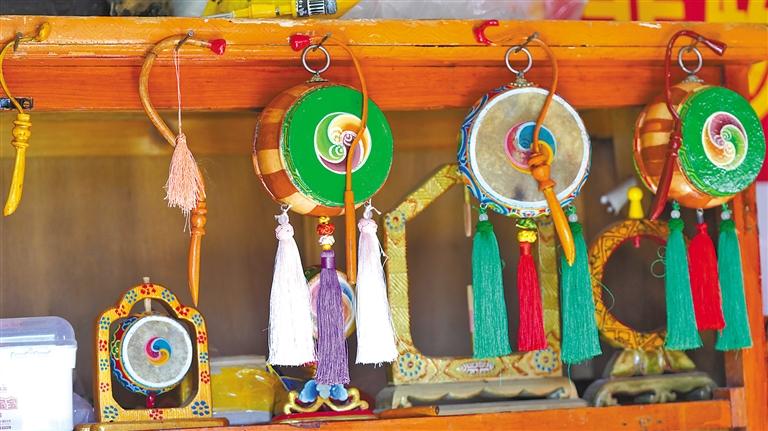 這時,一位從那曲趕來的顧客來找貢秋頓珠定制鼓。貢秋頓珠熱情地將顧客引入小院,向其展示已制成的鼓并敲擊試聽。顧客對鼓的精美形狀和上乘質(zhì)量贊不絕口,當即定制了兩面鼓。憑借多年的精湛技藝,貢秋頓珠制作的鼓聲名遠播,訂單源源不斷。