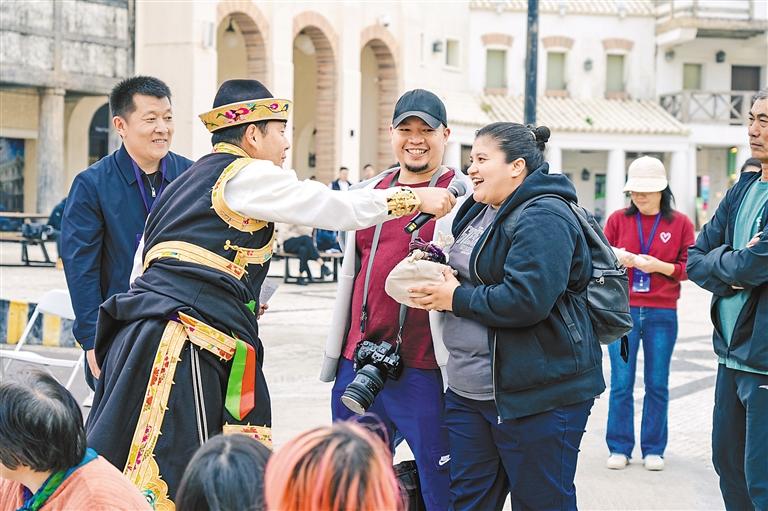 近日,林芝市非遺傳承人、青年企業(yè)家和青少年學生代表組團赴澳門特別行政區(qū)開展“石榴籽一家親”林芝非遺展演交流活動。在澳門青年展藝協(xié)會和澳門大學,與澳門文創(chuàng)青年代表進行交流,學習非遺創(chuàng)新發(fā)展經(jīng)驗;在澳門漁人碼頭表演非遺舞蹈《米納羌姆》、工布扎念博咚彈唱《達姆韻》等節(jié)目,展現(xiàn)林芝的文化魅力。