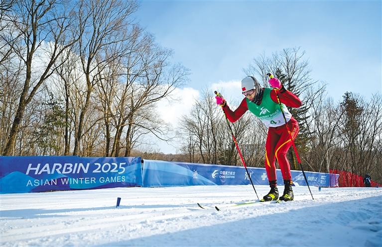 越野滑雪,是一項(xiàng)耐力和速度并重的運(yùn)動(dòng),以滑雪板和滑雪杖為工具,滑行于山丘雪原的運(yùn)動(dòng)項(xiàng)目,自1986年首屆亞冬會(huì)即被列為正式比賽項(xiàng)目,其賽道通常包括上坡、下坡和平地,分別占賽道總長(zhǎng)1/3,選手需要使用傳統(tǒng)式或自由式滑雪技巧進(jìn)行比賽。