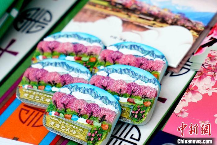 圖為西藏林芝第二十二屆桃花旅游文化節(jié)推介會(拉薩站)現(xiàn)場,展出的文創(chuàng)產(chǎn)品。李林 攝