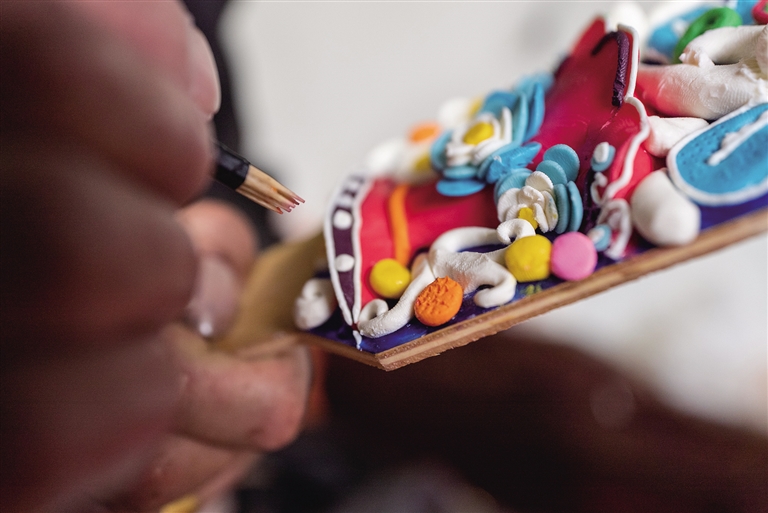 當(dāng)記者聊起如今市面上也有機器雕刻的酥油花時,師傅羅布次仁停下手中的活,說道:“酥油花是千年傳承下來的瑰寶,講究一年換一新,同樣也講究人們制作時注入的美好愿望和祝福。早在2013年,它就被列入西藏自治區(qū)級非物質(zhì)文化遺產(chǎn)名錄。如今雖然出現(xiàn)了機器雕刻的酥油花,但它們?nèi)绷舜鄠鞯牧α?,機械復(fù)制不了指尖傳遞的溫度。我們要傳承好這門技藝?!?/p>