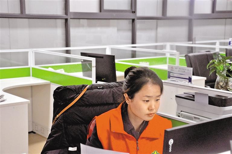 旦增德吉在拉薩市三級政務(wù)服務(wù)大廳一樓辦公點辦公。記者 王超 攝
