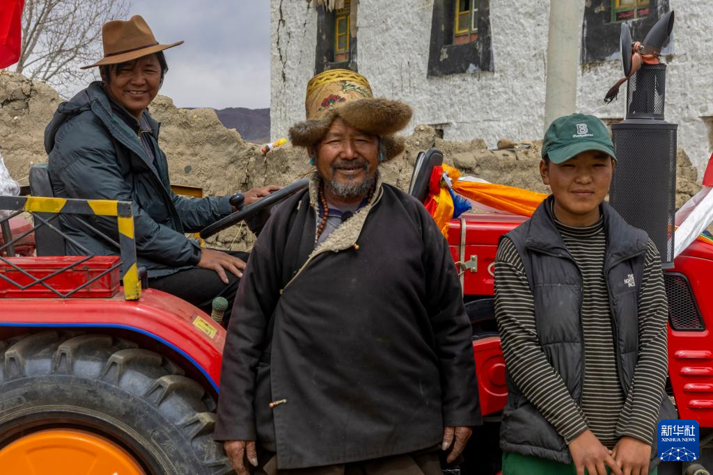 作為村中長者,尼瑪(左)在春耕儀式上接受敬酒(3月16日攝)。新華社記者 姜帆 攝