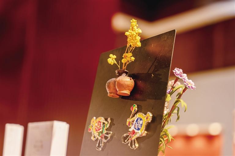 踏入文創(chuàng)展示區(qū),猶如穿越歷史長廊?!段某晒饔H圖》刺繡系列重現(xiàn)漢藏和親盛景,華美紋飾在紗幔上靈動舒展;鎮(zhèn)館之寶朱墨彩繪雙體陶罐化身實用藝術品,原始陶紋與插花功能巧妙結合,成為游客競相收藏的“微型博物館”。