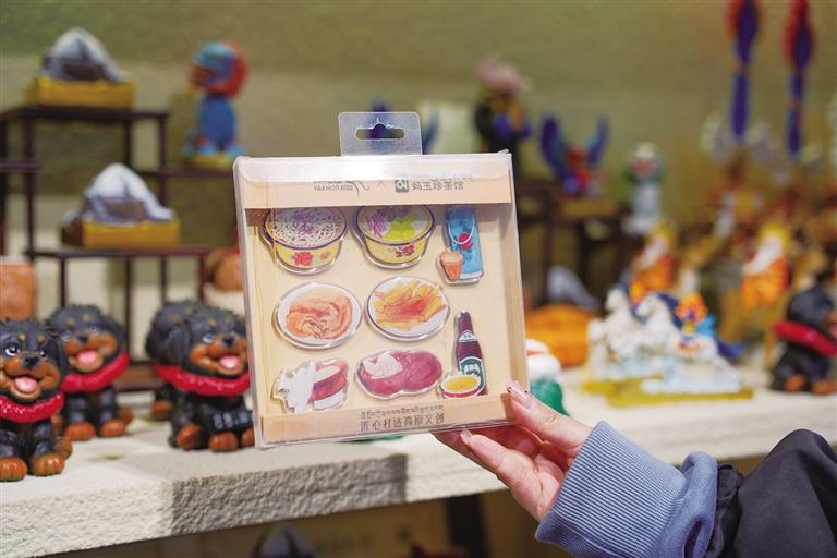 去年,他們聯(lián)合媽玉珍茶館推出的冰箱貼迅速成為了店內“明星產品”,從上市至今已售出3000個,相比其他同類產品,這一銷售成績尤為顯著。藏面、甜茶、咖喱飯、炸土豆和酥油茶……這些人們生活中觸手可及的本地美食,被制成了亞克力冰箱貼,人們將“生活”帶回了家。