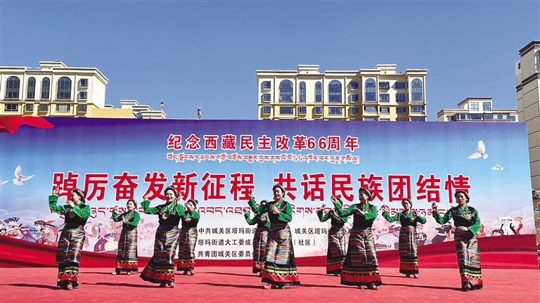 為隆重紀(jì)念西藏民主改革66周年,進(jìn)一步豐富居民群眾的精神文化生活,助力提升基層治理,3月26日,由中共拉薩市城關(guān)區(qū)塔瑪街道工作委員會、拉薩市城關(guān)區(qū)塔瑪街道辦事處主辦的紀(jì)念西藏民主改革66周年系列活動(dòng)在同心公園舉辦。據(jù)了解,此次活動(dòng)以“踔厲奮發(fā)新時(shí)代 共話民族團(tuán)結(jié)情”為主題,涵蓋文藝匯演和宣傳集市等,吸引了周邊眾多市民群眾參與。