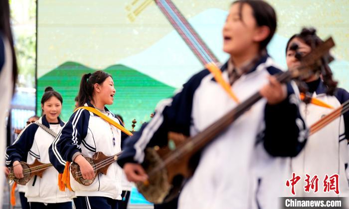 圖為4月19日,第二屆“拉薩春日書會(huì)”暨拉薩市全民閱讀推廣周系列活動(dòng)開幕式上的扎念琴彈唱。李林 攝