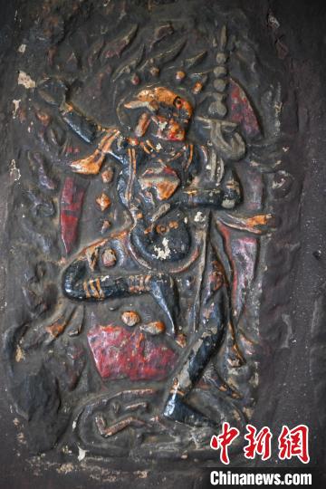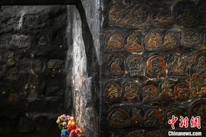 4月27日,記者探訪了當(dāng)雄縣貢堂鄉(xiāng)沖嘎爾村康馬寺的瑪尼拉康?,斈崂凳窃撍鲁扌卸粗獾脑缙谧诮袒顒訄鏊?,也是寺院里最古老的建筑。這里保存著令人驚嘆的石刻造像墻,這些石刻距今已有三百年歷史?,斈崂低庥^普通,但其室內(nèi)六面墻上整齊地貼滿了浮雕石刻板,共計(jì)1213塊(僅一塊缺失)。石刻內(nèi)容豐富,涵蓋了藏傳佛教各宗各派的本尊、祖師、佛母菩薩等,造型多姿多樣,線條清晰流暢。這處石刻造像墻對于研究西藏傳統(tǒng)雕刻、藏傳佛教以及歷史具有重大意義。中新社記者 貢嘎來松 攝
