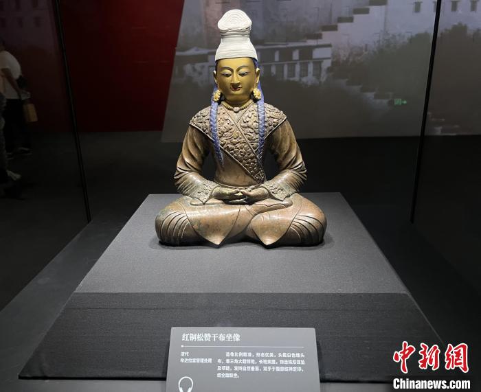 圖為展出的紅銅松贊干布坐像。記者 岳依桐 攝