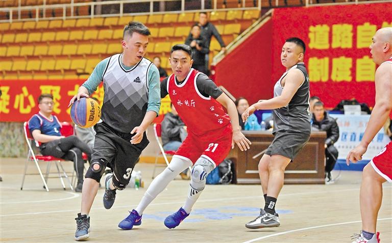 為激勵(lì)廣大青年繼承和發(fā)揚(yáng)五四精神,推動(dòng)健康西藏建設(shè),區(qū)直機(jī)關(guān)工委聯(lián)合自治區(qū)體育局、團(tuán)區(qū)委舉辦區(qū)直單位第八屆全民健身運(yùn)動(dòng)會(huì)。圖為三人制籃球賽。記者 唐斌 攝