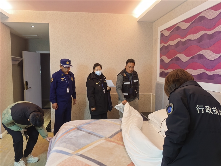 文旅部門對(duì)酒店進(jìn)行檢查?!D片由西藏自治區(qū)文旅廳執(zhí)法監(jiān)督處提供