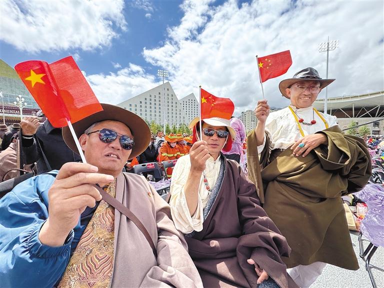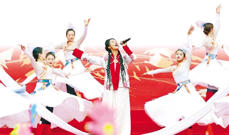 演出中,不同民族的文藝志愿者齊聚一堂。漢族、藏族、蒙古族、彝族等各民族藝術(shù)家攜手合作,用藝術(shù)搭建起溝通的橋梁。他們用歌聲、舞蹈、相聲、朗誦等多種藝術(shù)形式,深情歌頌新時(shí)代黨的治藏方略,生動展現(xiàn)西藏自治區(qū)成立60年來的滄桑巨變,傳遞民族團(tuán)結(jié)的深厚情誼,讓現(xiàn)場觀眾沉浸在藝術(shù)的氛圍中。