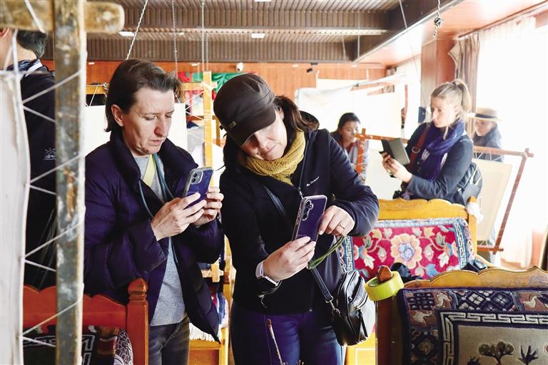以卡若拉冰川作為日喀則的首站,無疑是開啟雪域高原之旅的絕佳選擇。在領略完壯麗的自然奇觀后,6月7日,國際旅行商代表團轉而深入探訪藏文化瑰寶。他們來到日喀則市桑珠孜區(qū)的夏魯村,專程前往西藏優(yōu)章傳統(tǒng)手工藝發(fā)展有限公司考察非物質(zhì)文化遺產(chǎn)——夏魯泥塑和優(yōu)章彩靴。