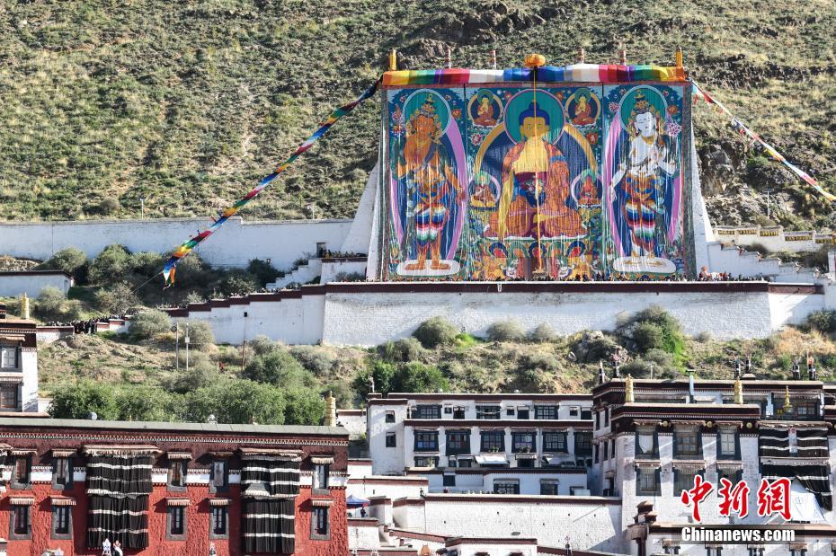 7月10日,西藏日喀則市扎什倫布寺展出釋迦牟尼佛巨幅唐卡佛像。扎什倫布寺是歷代班禪大師的駐錫地,也是藏傳佛教格魯派六大寺院之一。