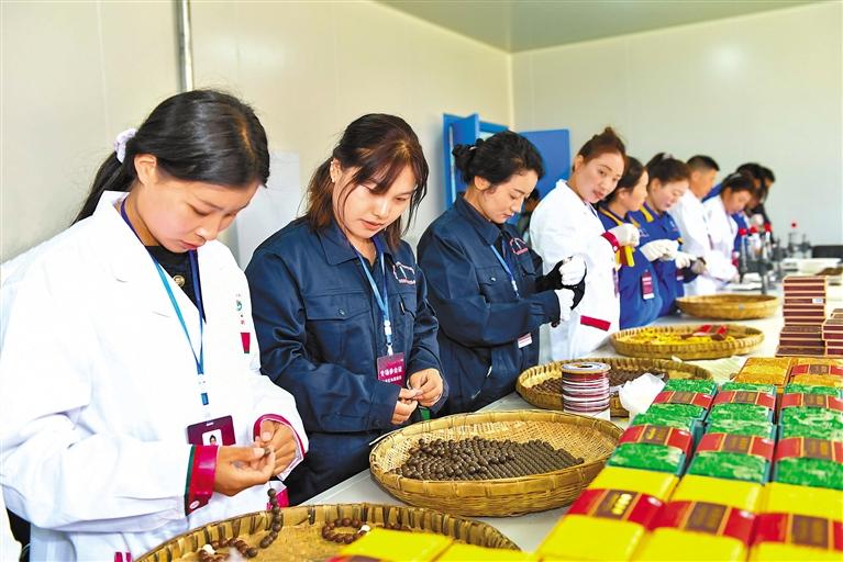 圖為西藏仙露藏藥有限公司的員工在分揀包裝藏藥藥品。記者 丹增群培 攝