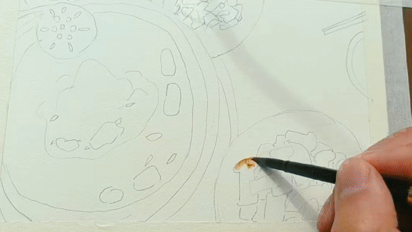展開畫紙,最先捕捉到的是夏日魯朗層次豐富的綠意:嫩綠的草地鋪展開來,湖水映出清澈的藍綠色澤,遠處的山巒泛著淡淡青色,層層疊疊。道路在明媚的陽光下,潔白如雪,在綠色中蜿蜒,串聯(lián)起一個個藏式村落。