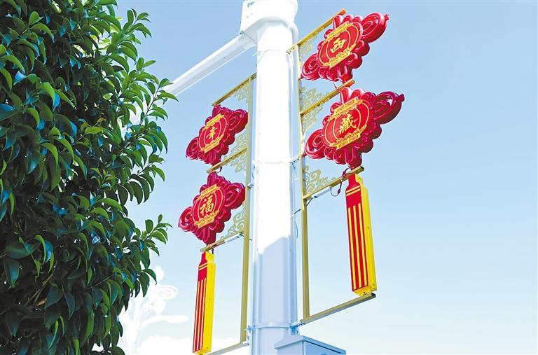 拉薩街頭路燈燈桿上的中國結。 西藏日報記者 王敏 攝