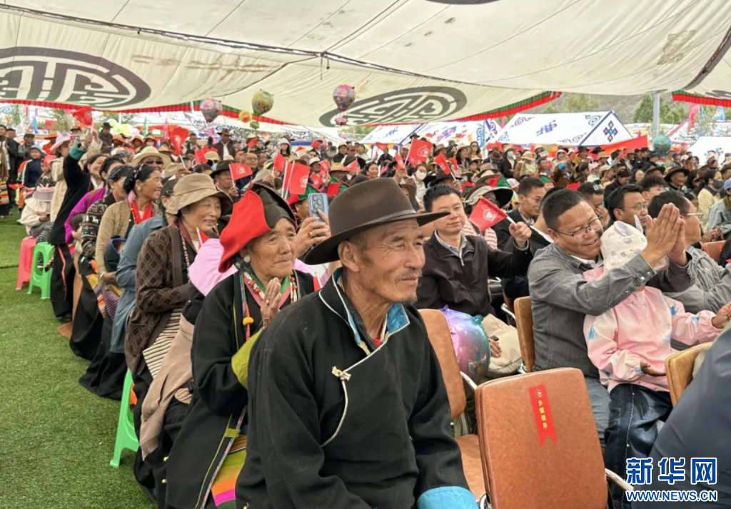 24日,群眾在觀看“珠峰兒女心向黨 開放發(fā)展譜新篇”南木林縣慶祝西藏自治區(qū)成立60周年文藝匯演。(受訪者供圖)