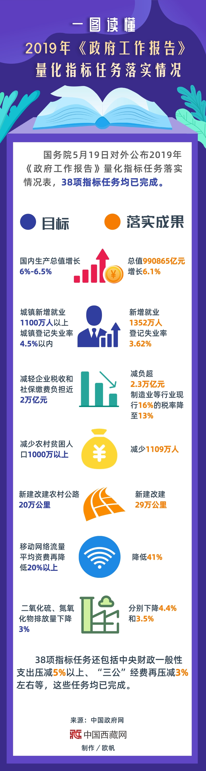 一圖讀懂2019年《政府工作報告》量化指標任務落實情況