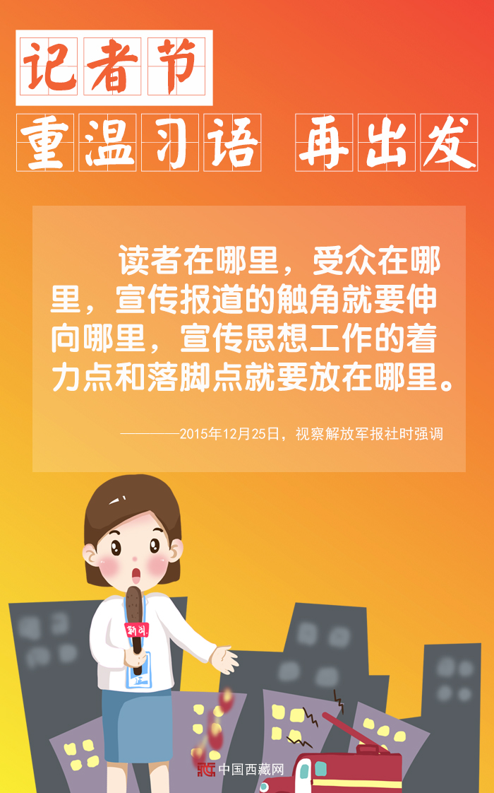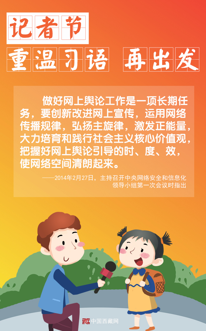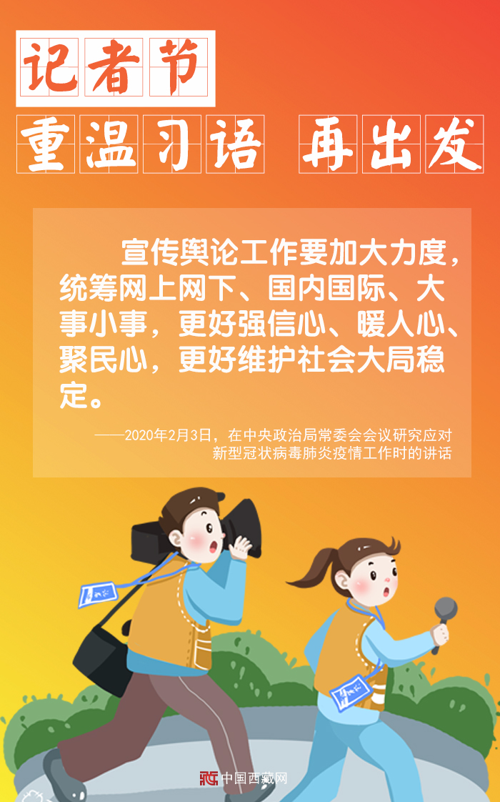 此刻,節(jié)日的主角們或在新聞現(xiàn)場(chǎng)忙碌著,或在抗疫一線記錄著,或在奮筆疾書書寫著……一直以來,習(xí)近平總書記十分關(guān)心新聞工作者,并提出了許多殷切希望。在這個(gè)特別的日子里,讓我們重溫總書記囑托,強(qiáng)化責(zé)任擔(dān)當(dāng)再出發(fā)。(中國(guó)西藏網(wǎng) 編輯/周晶 制作/許娜)