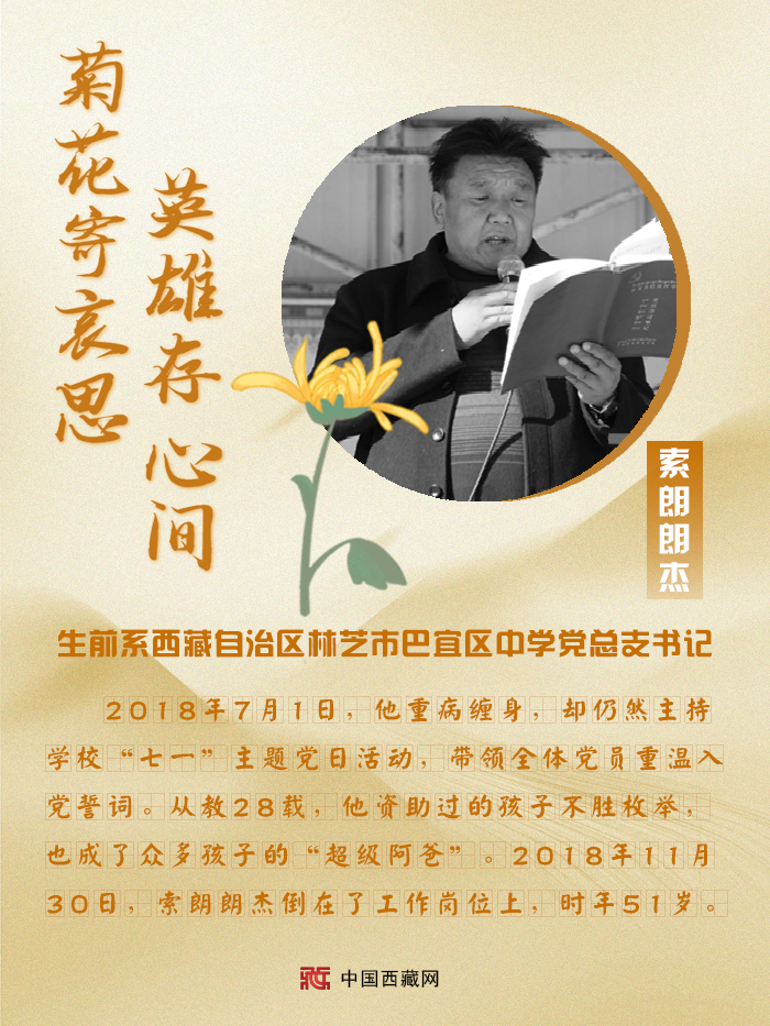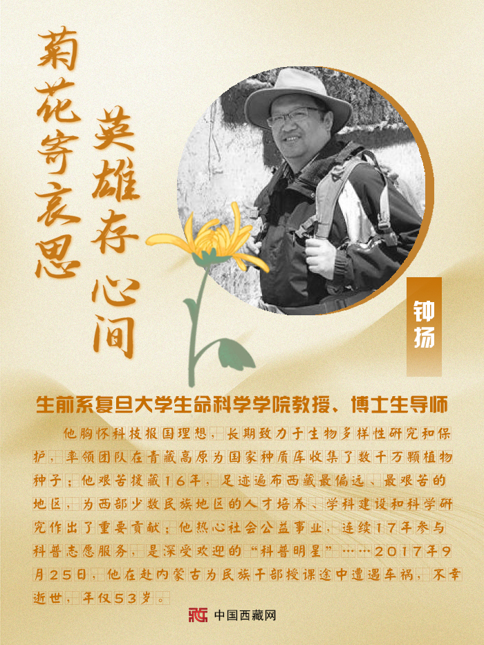 編者按:春風(fēng)輕撫,撫不平思念的深情。春雨嘀嗒,道不盡無窮的哀思。又到一年清明時,攜一朵菊花追思為西藏奉獻生命的時代英雄,他們用自己的光亮匯聚成青藏高原的星河閃耀,指引我們繼續(xù)前行。此刻,無論你在哪里,請一起向他們致敬,默哀。(中國西藏網(wǎng) 編輯/周晶 制作/許娜)