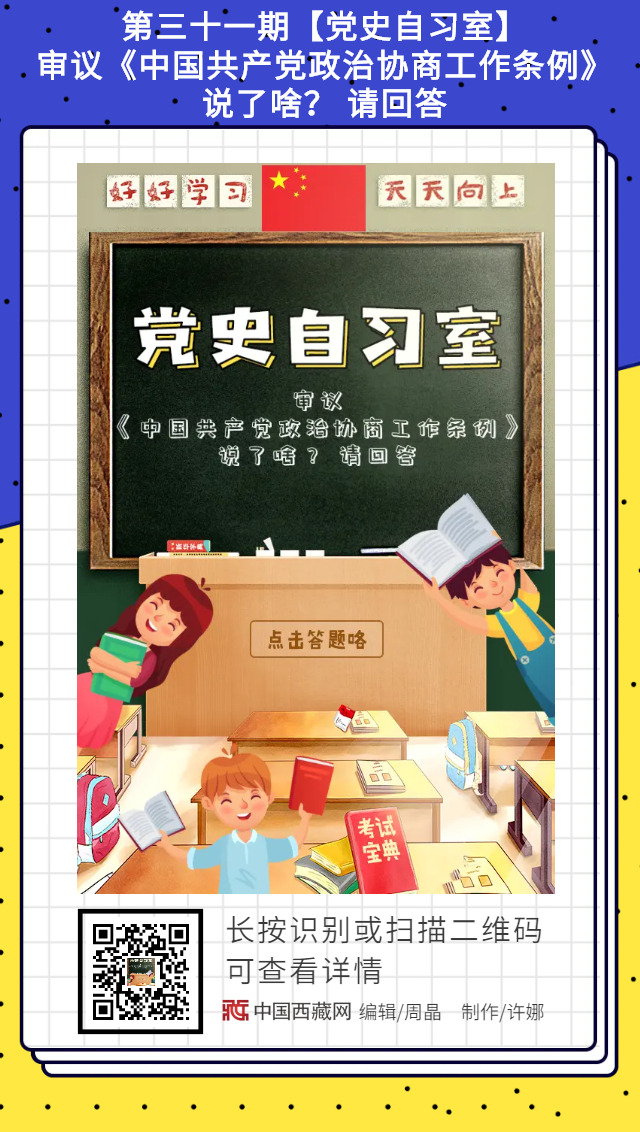 第三十一期【黨史自習(xí)室】審議《中國(guó)共產(chǎn)黨政治協(xié)商工作條例》說(shuō)了啥? 請(qǐng)回答