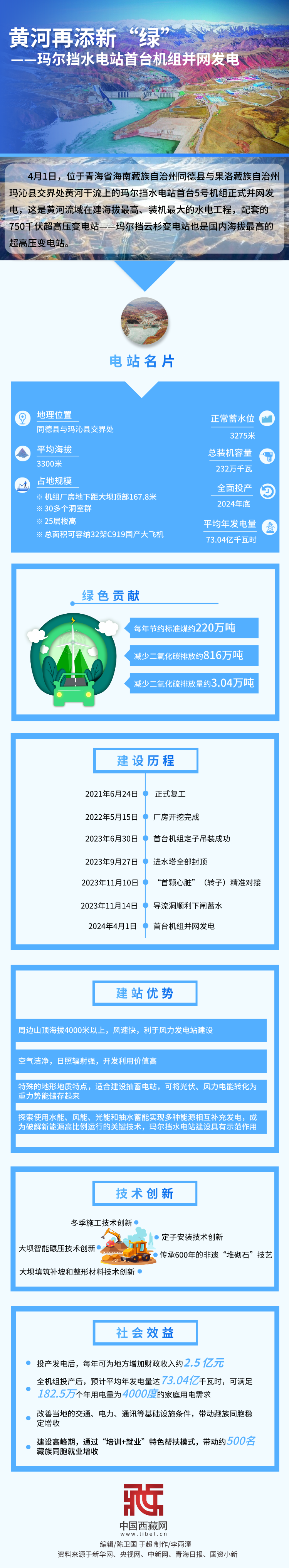 黃河再添新“綠”——瑪爾擋水電站首臺(tái)機(jī)組并網(wǎng)發(fā)電