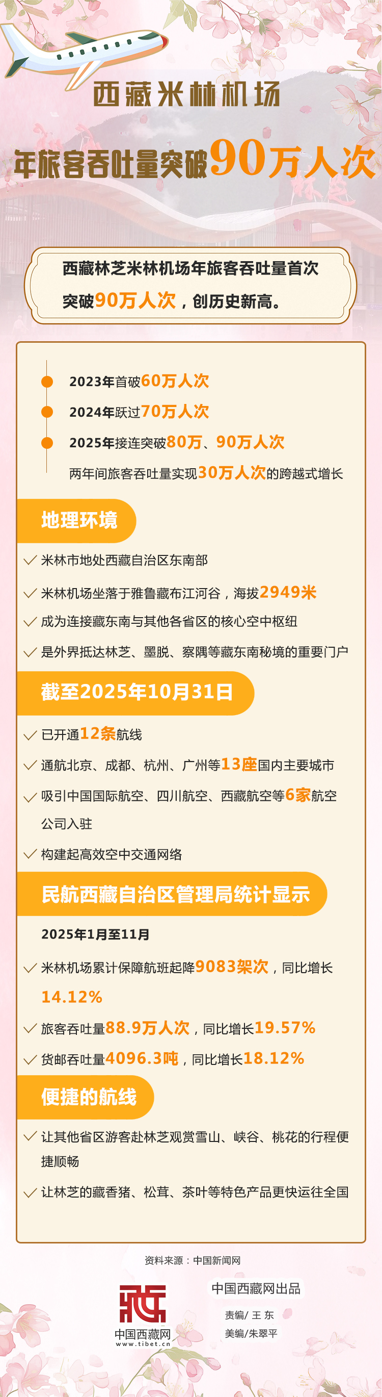 海報|西藏米林機場年旅客吞吐量突破90萬人次