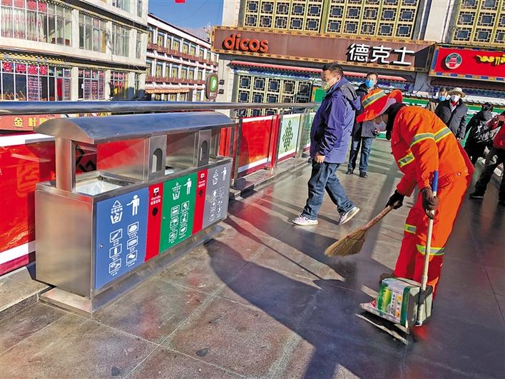 據(jù)城關(guān)區(qū)環(huán)衛(wèi)局局長(zhǎng)米瑪次仁介紹,截至2019年底,城關(guān)區(qū)環(huán)衛(wèi)局與拉薩城投潔達(dá)環(huán)衛(wèi)保潔有限公司積極與部分企事業(yè)單位、學(xué)校及社區(qū)等47個(gè)區(qū)域?qū)?,分別投放了四分類垃圾箱120套、240L垃圾桶658個(gè)、有害垃圾消納袋116個(gè)、腳踏兩分類垃圾桶321個(gè)。已建成并投入使用的積分兌換超市3家、垃圾分類投放亭4座、垃圾分類可回收物臨時(shí)存放點(diǎn)13個(gè)、有害垃圾臨時(shí)存放點(diǎn)2個(gè);采購(gòu)2臺(tái)可回收物運(yùn)輸車輛、1臺(tái)有害垃圾運(yùn)輸車輛、2臺(tái)餐廚垃圾運(yùn)輸車輛和1臺(tái)大件垃圾運(yùn)輸車輛。在春節(jié)和藏歷新年期間,抽調(diào)工作人員在娘熱南路、北京東路、江蘇南路、康昂南路、林廓東路、沖賽康天橋、熱木其天橋、八廓商城天橋、阜康天橋等人流量較多的區(qū)域放置了垃圾四分類果皮箱。