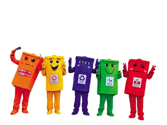 5個(gè)宣傳垃圾分類的卡通人偶。本版資料圖片均由記者 央金 攝