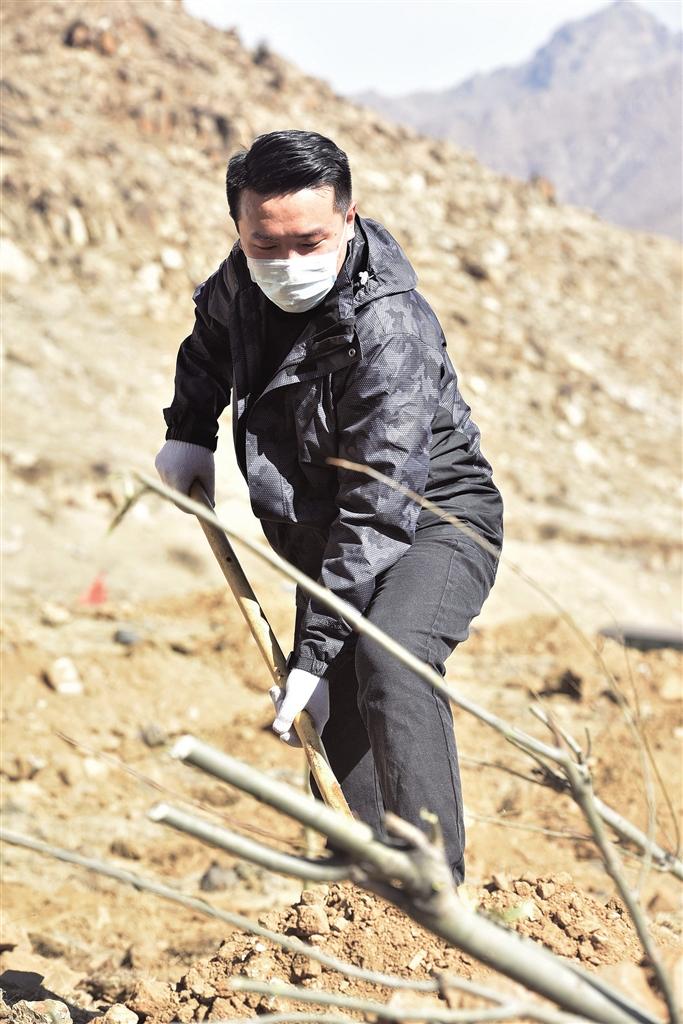 3月27日上午,在義務植樹現(xiàn)場,記者看到來自20家駐拉薩各區(qū)直、市直單位的植樹者們正忙得熱火朝天,有的提水、有的扶苗、有的埋土填坑,一派熱鬧景象。據(jù)悉,今年拉薩市將會有近兩萬人參與到義務植樹中,計劃種樹300多萬株。此次義務植樹活動以適地適樹的原則,種植河北楊、江孜沙棘等鄉(xiāng)土樹種。