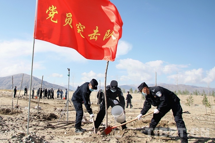 期間,鉆坑、種樹、回土、澆水,各項步驟,環(huán)環(huán)緊扣。3個小時,300余株樹苗回到了土壤的懷抱。民警們今日的“綠洲夢”,在明日就會成為現(xiàn)實。