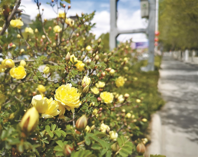 圖為拉薩市市區(qū)街道盛開(kāi)的黃刺玫。拉薩融媒記者 凃 瓊攝