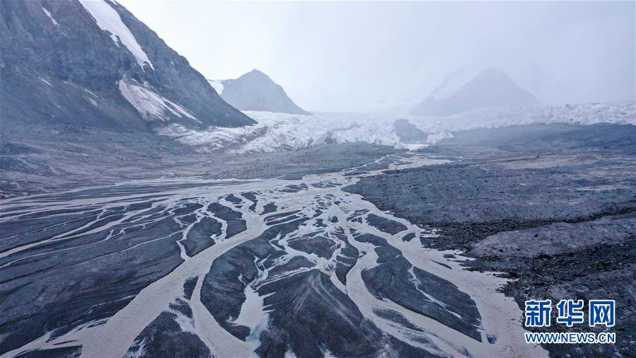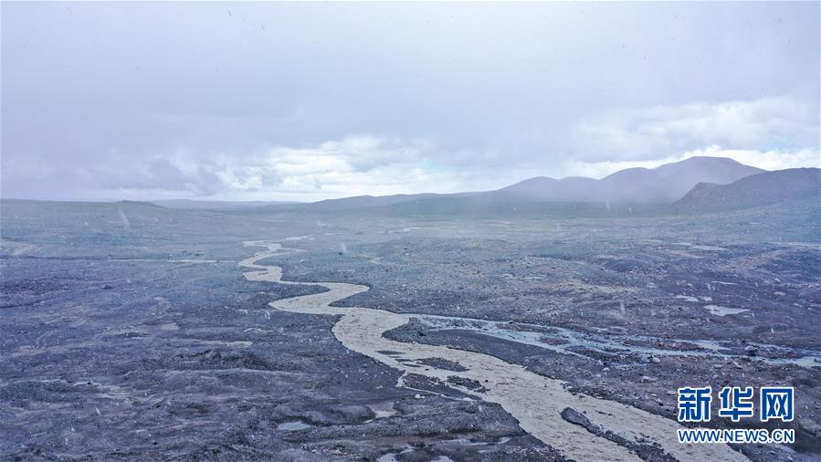 這是8月15日拍攝的崗加曲巴冰川融水形成的尕爾曲(無人機(jī)照片)。 位于青海省玉樹藏族自治州的崗加曲巴冰川,坐落于長(zhǎng)江源園區(qū)的各拉丹冬雪山東坡,從空中俯瞰,層疊的冰塔顯得尤為壯觀。 新華社記者 吳剛 攝