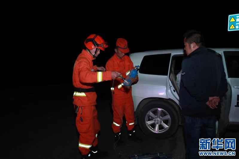 森林消防員為受困群眾提供氧氣瓶。新華社發(fā)(西藏森林消防總隊(duì)提供)