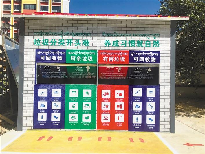 圖為拉薩市城關(guān)區(qū)樂業(yè)苑內(nèi),分類垃圾投放箱房。 記者 李梅英 攝