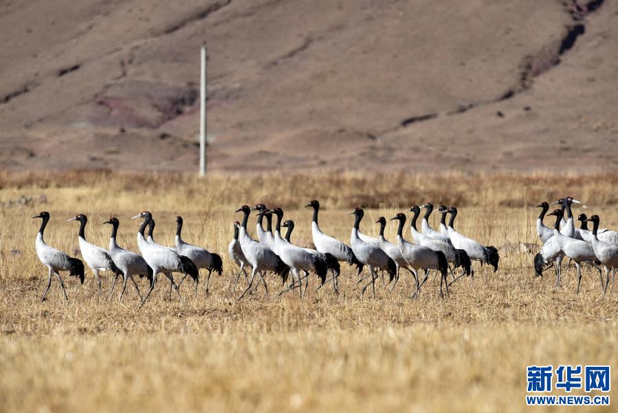 林周縣黑頸鶴自然保護區(qū)里的黑頸鶴(12月12日攝)。新華社記者 張汝鋒 攝
