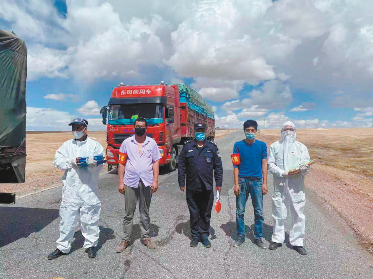 五道梁保護(hù)站的隊員們攔住過往車輛,為前往卓乃湖產(chǎn)仔的藏羚羊打開生命通道。