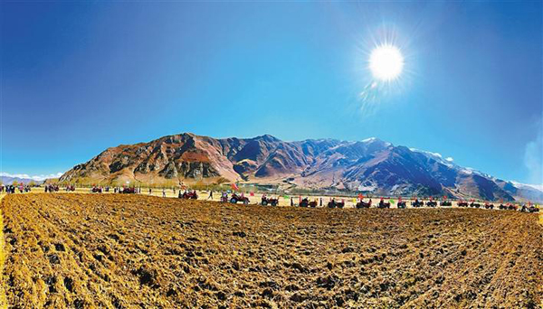 隨著天氣逐漸轉暖,西藏自治區(qū)春耕生產從低海拔地區(qū)向高海拔地區(qū)次第展開,農牧民耕地播種的忙碌景象勾畫出一幅“人勤春來早,春耕春播忙”的美麗畫卷。