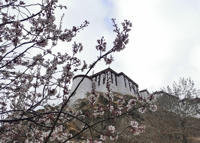 3月23日,拉薩龍王潭寺廟內(nèi)的杏花、桃花等已經(jīng)綻放。江飛波 攝