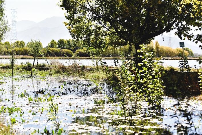 羅布林卡管理處園林科工作人員進行苗木補栽。記者 央金卓瑪 攝