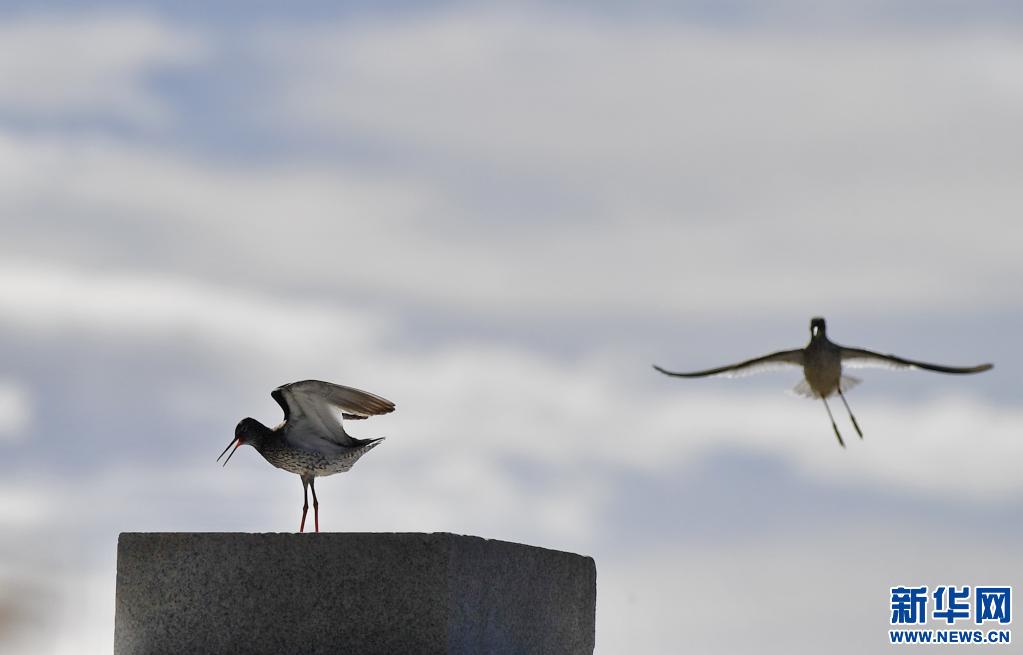 在拉魯濕地拍攝的紅腿鷸(6月2日攝)。新華社記者 張汝鋒 攝