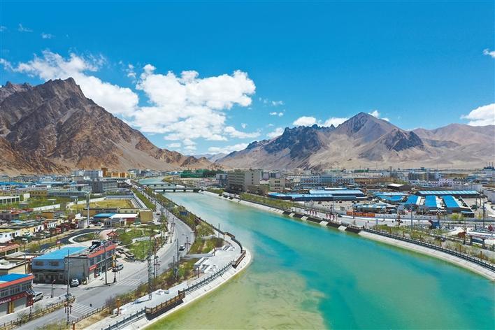 站在尼色日山眺望,綠植圍繞城市,樹木成林,生機勃勃;鳥瞰年楚河畔,大地盡披綠裝,綠茵如毯,綿延天際;漫步鄉(xiāng)野間,道路兩旁的樹木隨風(fēng)搖曳,綠意盎然,房屋村舍掩映在錯落有致的綠植之中……如今的日喀則,可謂滿城擁翠,綠意濃濃。