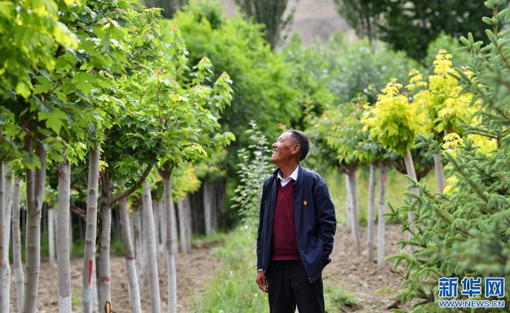 山南市扎囊縣某苗圃基地負責人邊久在查看基地內(nèi)栽種的樹苗(7月20日攝)。新華社記者 晉美多吉 攝