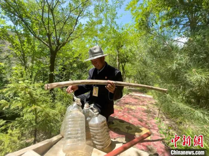 正值烈日當頭,禹王峽內(nèi)的一處山坡上,72歲的馬進才穿著中山裝、布鞋,穿梭在林間澆水、巡護,用他的話說,“每天都要來看看‘老朋友’”。