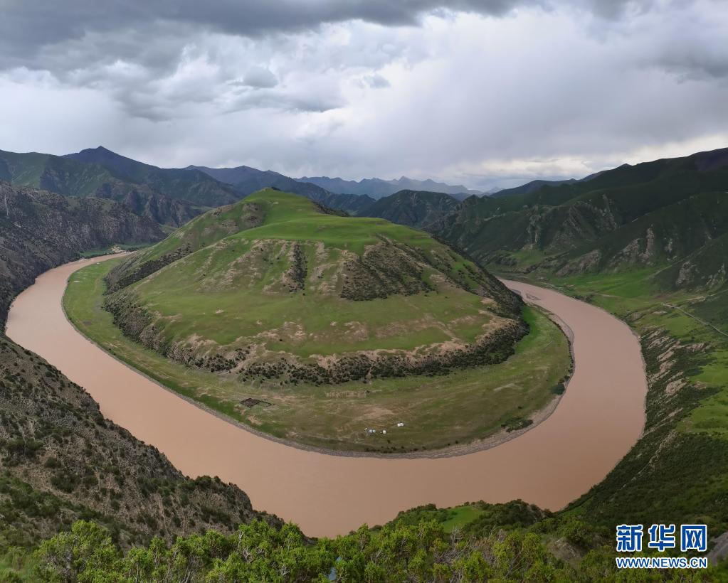 這是7月23日在玉樹藏族自治州治多縣葉青村拍攝的“萬里長(zhǎng)江第一灣”。新華社記者 呂雪莉 攝