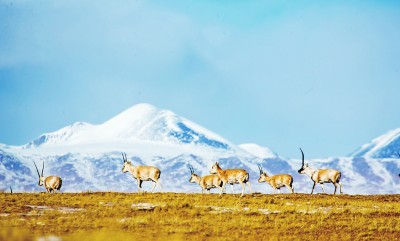 三江源國家公園內(nèi)的藏羚羊群。趙新錄 攝/光明圖片