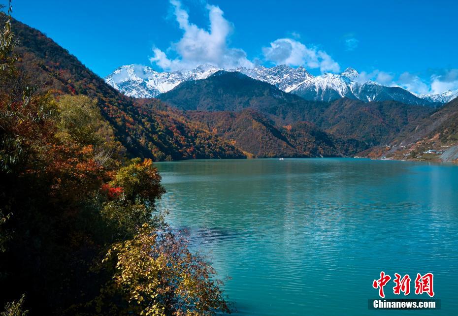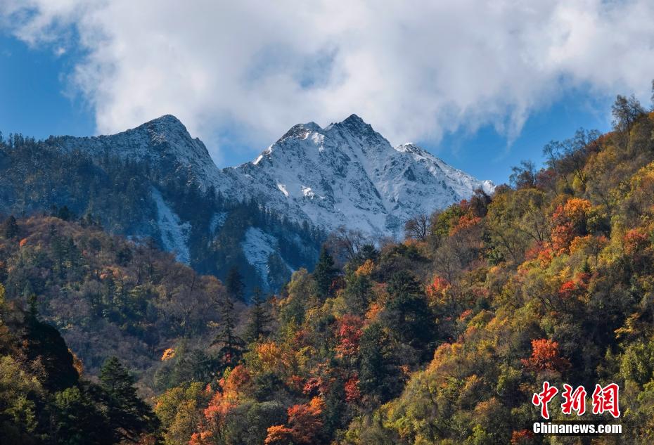 圖為彩林與雪山交相輝映。 胡宇 攝
