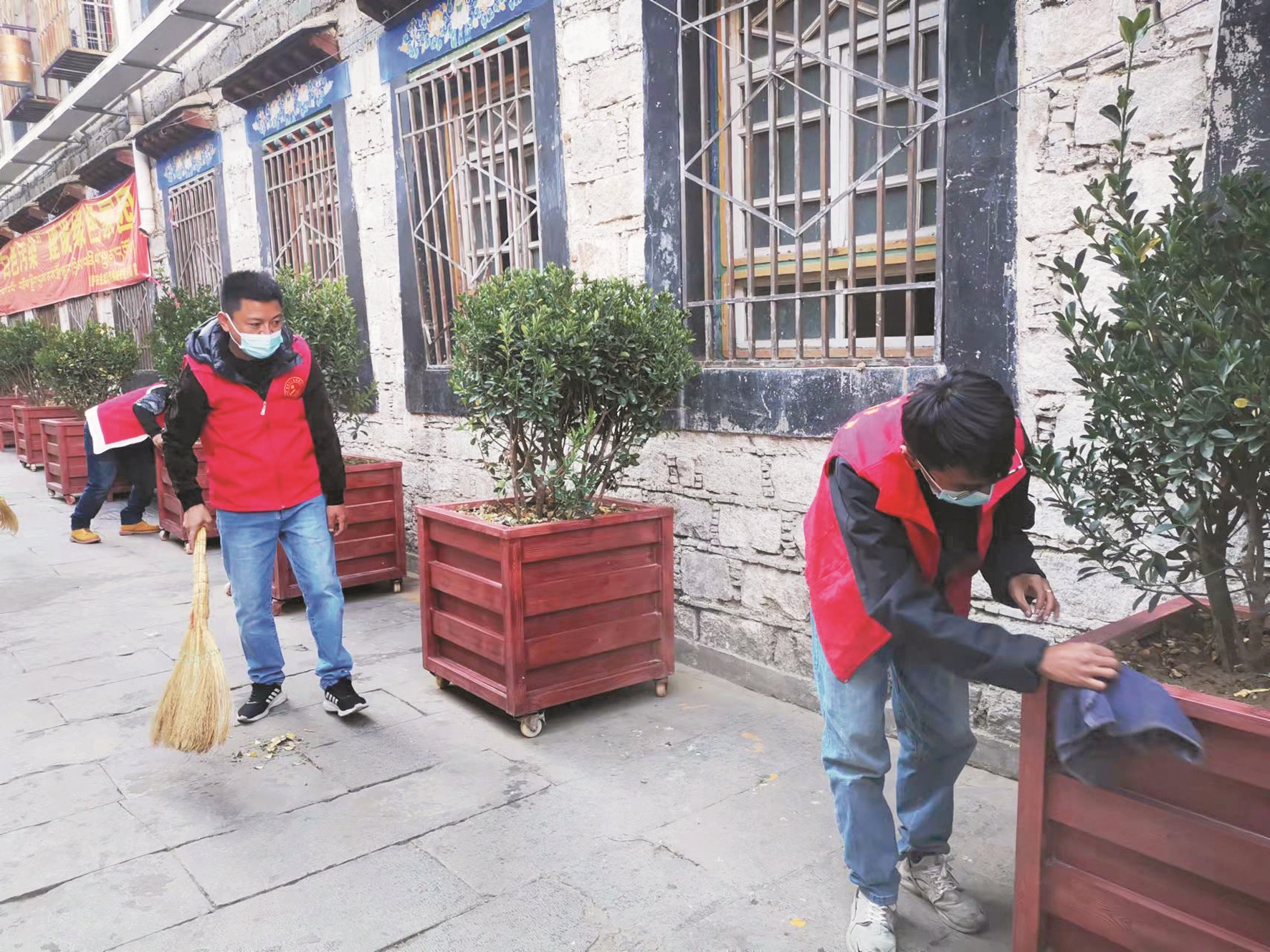 近日,西藏拉薩市城關(guān)區(qū)整治背街小巷工作組工作人員和策門林社區(qū)工作人員共同在策門林社區(qū)開展背街小巷環(huán)境清理工作?;顒又?,工作人員身穿紅馬甲,大家手拿掃帚、抹布分工合作,各司其責,認真打掃轄區(qū)衛(wèi)生,充分發(fā)揮不怕臟、不怕累的精神,齊心協(xié)力為轄區(qū)居民營造一個更美好、更舒心、更便利的生產(chǎn)生活環(huán)境。同時,工作人員還給社區(qū)居民宣傳環(huán)保知識,引導廣大居民群眾充分發(fā)揮主人翁意識,從自身做起,從一點一滴做起,共同維護社區(qū)良好環(huán)境。